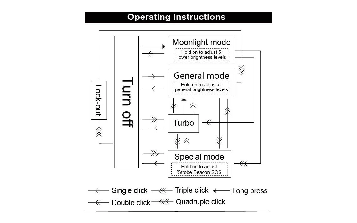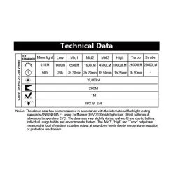 - Turbo: 26,000 Lumens – 1 H 20 Mins