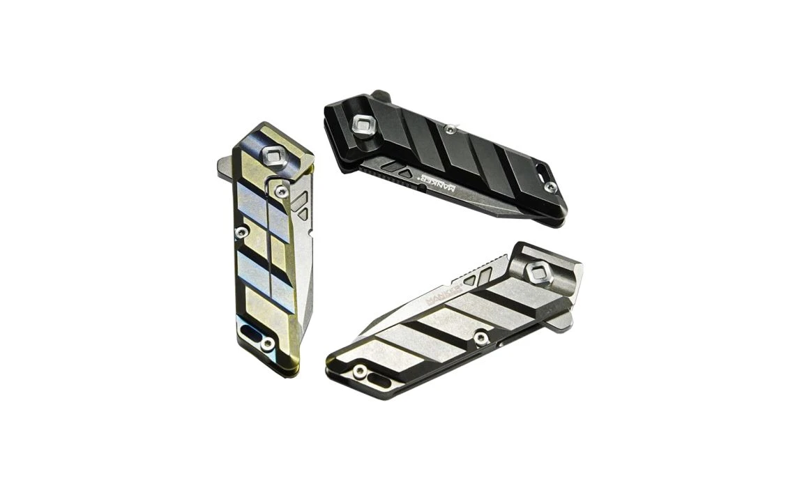 Manker Saber is a small folding knife from Manker has a TC4 Titanium handle and an M390 stainless steel blade with a liner lock and ceramic ball detent. It is handmade and polished, and small enough to be used as a pendant or attached to a keyring. TC4 Titanium handle and M390 stainless steel blade