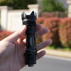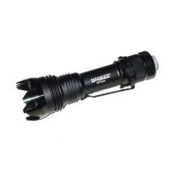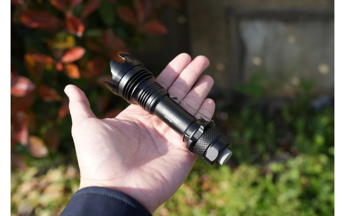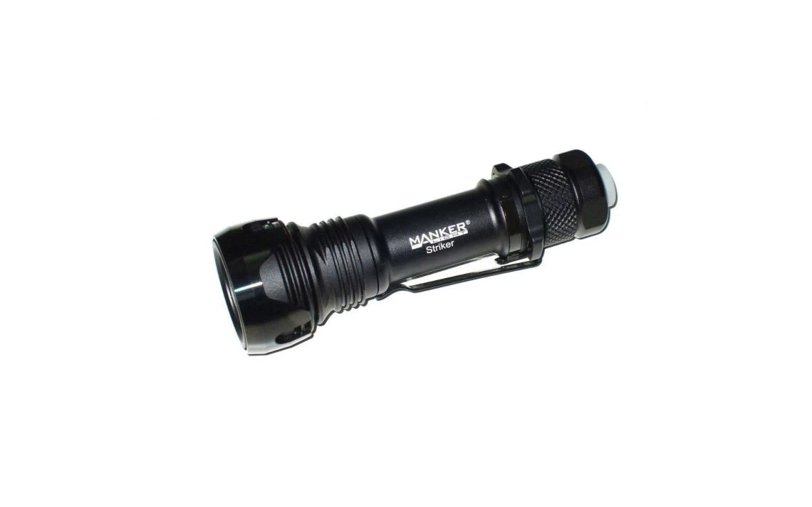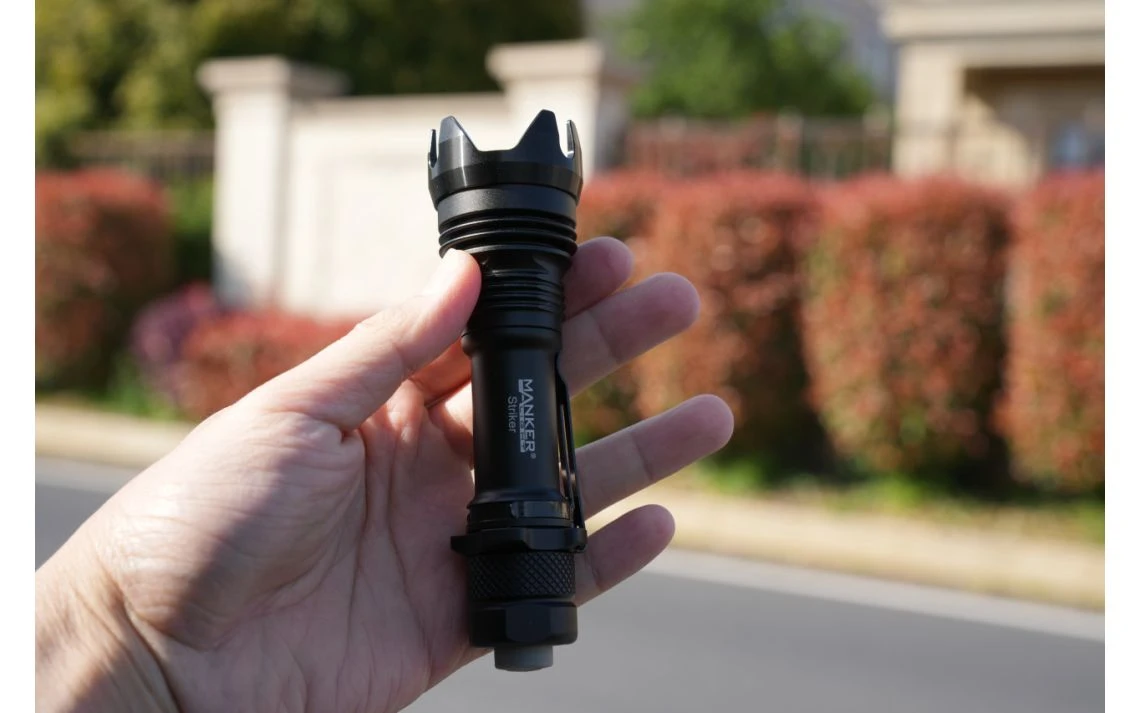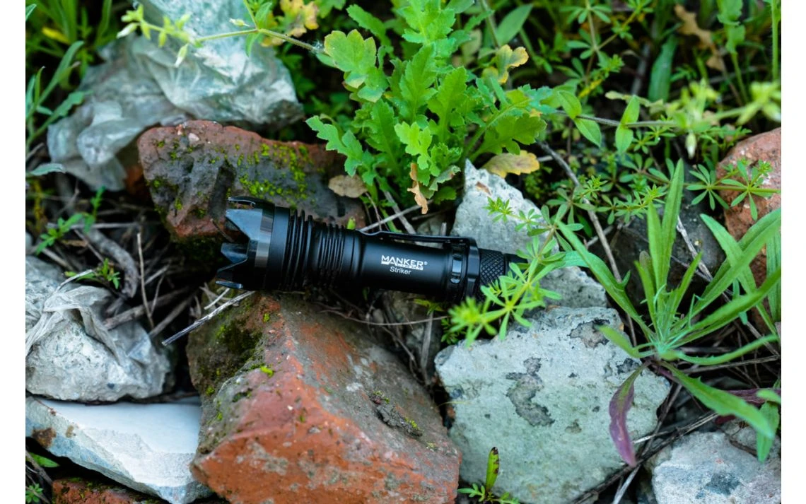 158.4g, 2300 Lumens, 62,500 cd: The Manker Striker is a torch designed for tactical, hunting, and law enforcement applications. It is equipped with a LUMINUS SFT40 LED that produces a maximum output of 2300 lumens and has a maximum beam distance of 500 metres. It is powered by a 3.7V 2600mAh high-drain protected 18650 rechargeable Li-ion battery with a USB-C charging port. The forward click large tactical tail switch allows for momentary-on and constant-on illumination. The torch features a removable stainless steel contrasting black strike bezel that can be used for self-defense, night combat, and as a glass breaker, or it can be removed and reversed for a less aggressive look while still protecting the core components of the torch. Compact tactical torch with strike bezel!