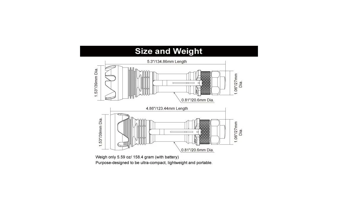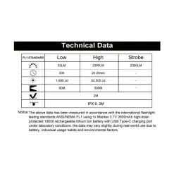 - Powered by 1x 3.7V 2600mAh high-drain protected 18650 rechargeable lithium ion battery with USB-C charging port (Included)