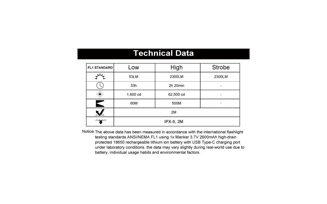 - 1 x Manker 3.7V 2600mAh high-drain 18650 USB rechargeable Li-ion battery
