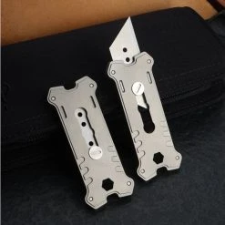 The EK16 is a utility knife available in titanium and copper. It’s bigger size compared to the EK12 makes it more comfortable to hold. At the tail of the knife there is a hole for attaching it to your lanyard or keychain for easy carrying plus it can be used as a hexagon screwdriver. Each side of the EK16 has two tritium slots so you can add in your own vials to make the knife look even better (sold separately).