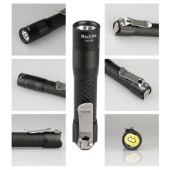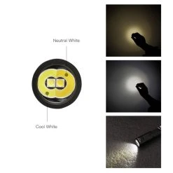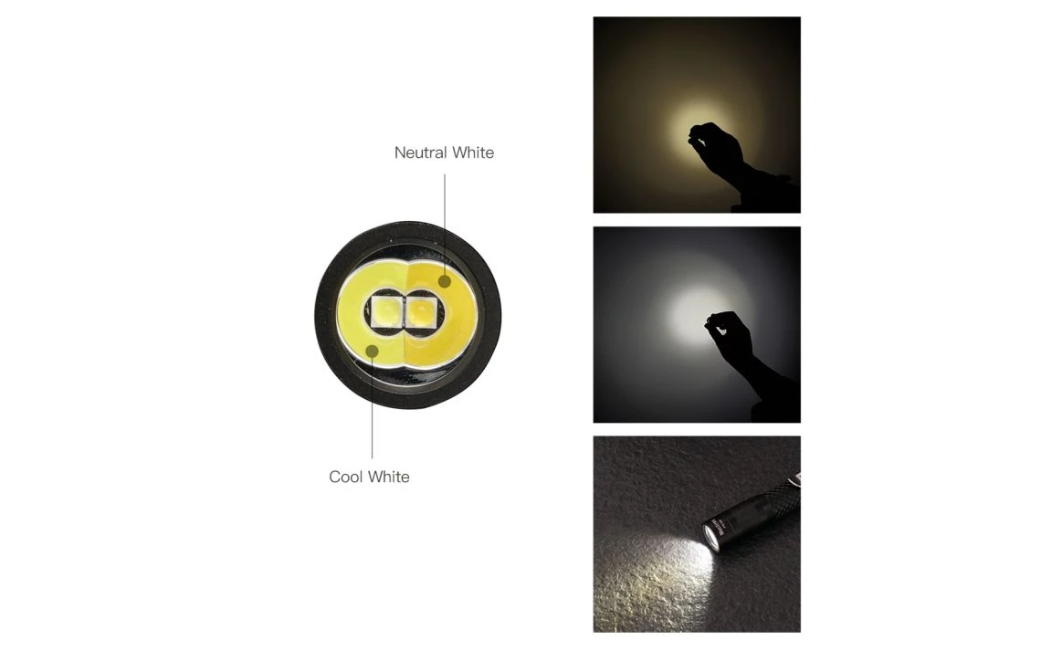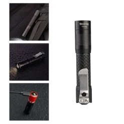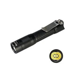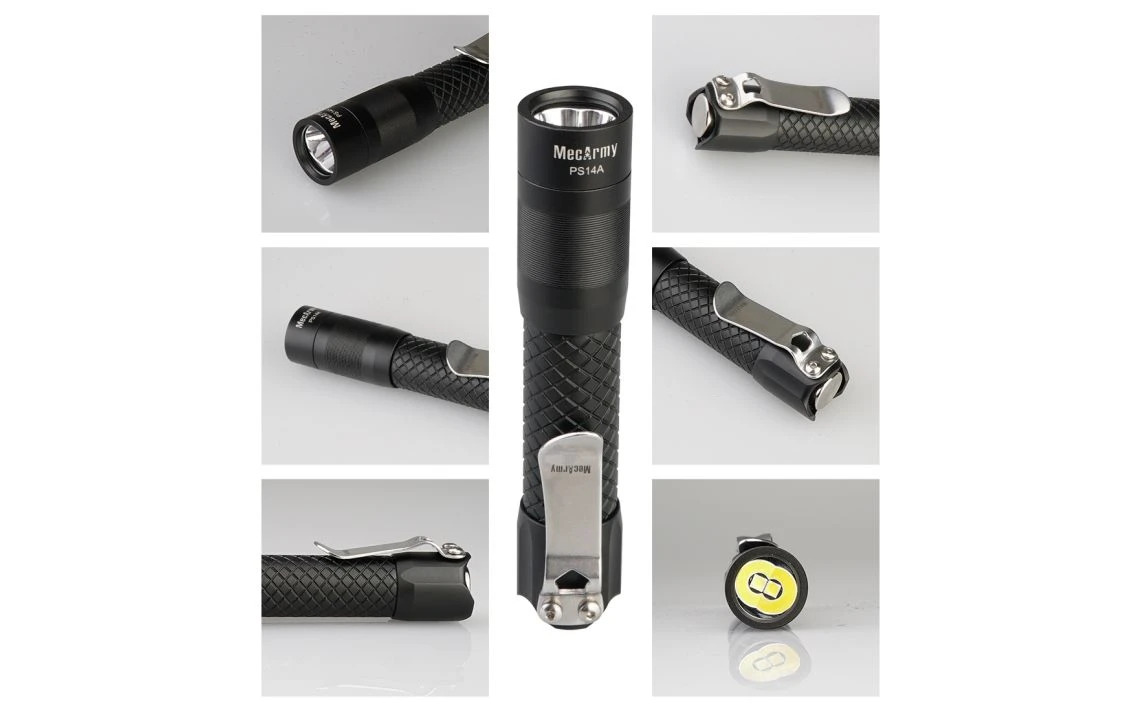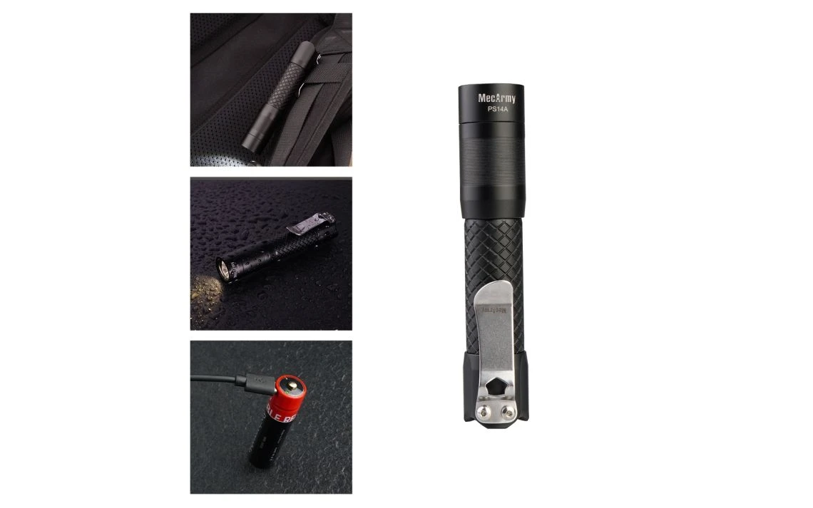 45g, 1200 Lumens: The MecArmy PS14 is a compact dual output aluminium EDC torch. It features two CREE LEDs which offer cool white and neutral white and can be used together or independently. The PS14 runs off a USB rechargeable 14500 Li-ion battery but is also compatible with AA batteries however output is lower. The max output using a 14500 battery is 1200 lumens when using both LEDs and there are 4 brightness levels to choose from plus a strobe mode. You can easily control the torch and change brightness levels with the tail switch. USB- rechargeable 14500 Li-ion battery included.