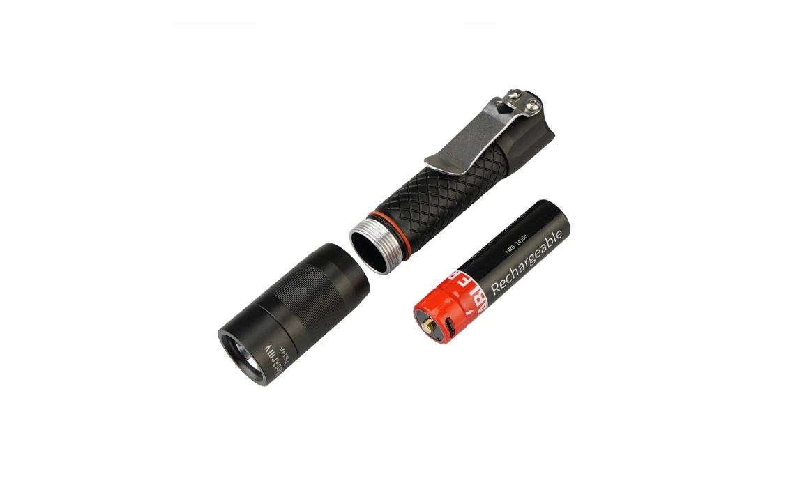 - Runs off a single AA battery or 14500 Li-ion battery (included)