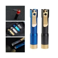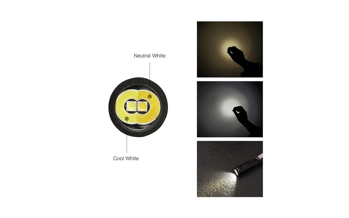 58g, 1200 Lumens: The MecArmy PS14 is a compact dual output titanium EDC torch. It features two CREE LEDs which offer cool white and neutral white and can be used together or independently. The PS14 runs off a USB rechargeable 14500 Li-ion battery but is also compatible with AA batteries however output is lower. The max output using a 14500 battery is 1200 lumens when using both LEDs and there are 4 brightness levels to choose from plus a strobe mode. You can easily control the torch and change brightness levels with the tail switch. The PS14 also comes in seven different styles. USB- rechargeable 14500 Li-ion battery included.
