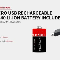 - Runs off one 16340 (included) or 18350 Li-ion rechargeable battery