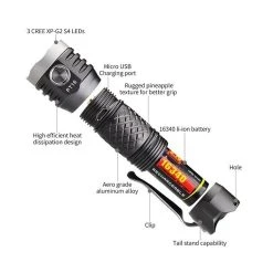 - Utilises 3 x CREE XP-G2 LEDs to produce a max output of 1100 lumens