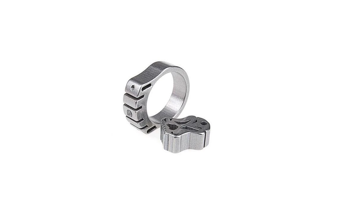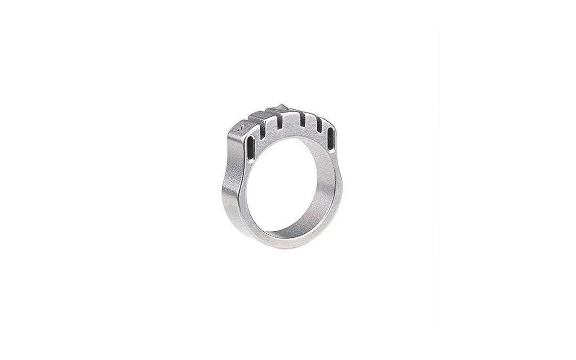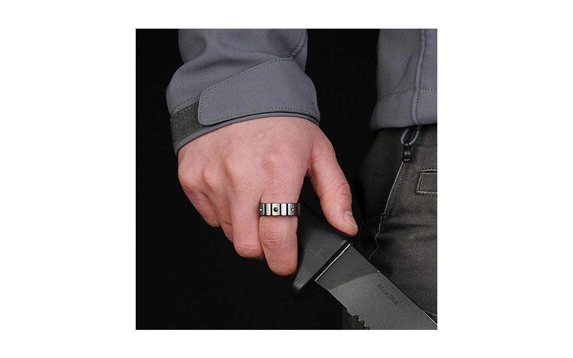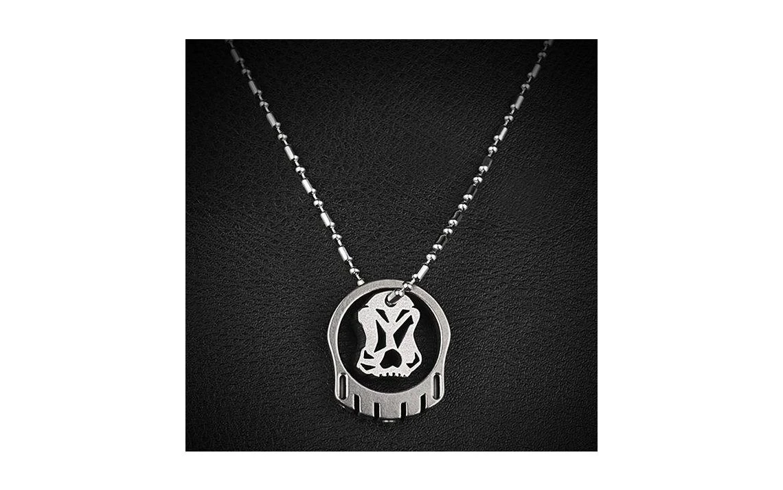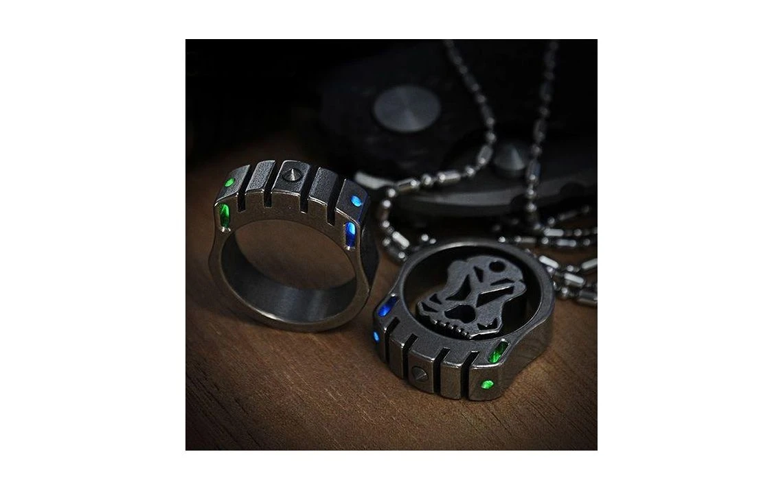 The MecArmy SKF2T is a titanium tactical ring with two tritium glow bars installed. The tritium vials automatically glow in the dark and have a lifespan of up to 25 years. The ring is exquisite and lightweight, designed for everyday use. The SKF2T can be worn as a ring or as a necklace with the included beaded chain and skull pendant. It also features a tungsten steel strike bezel which can be used to easily break glass in an emergency or for self defence. Made from high quality titanium it is sturdy and durable and is available in three sizes.