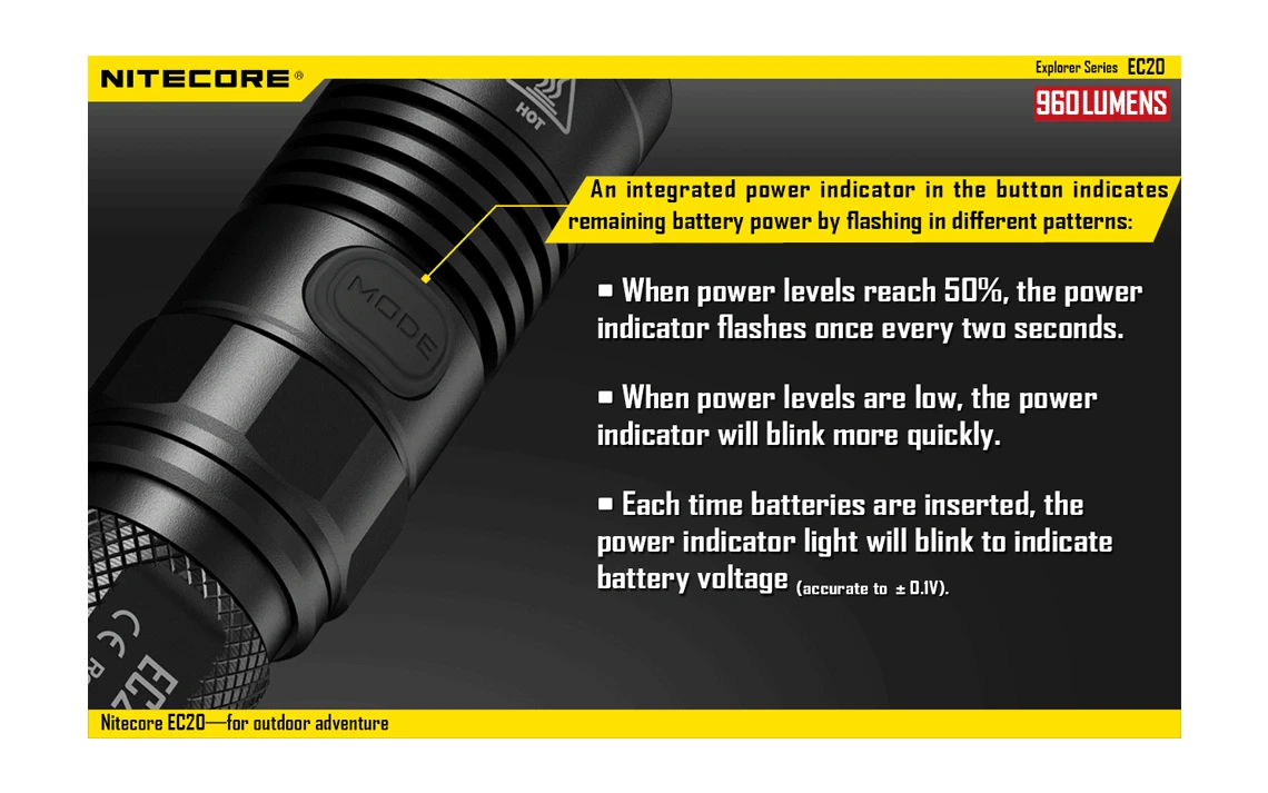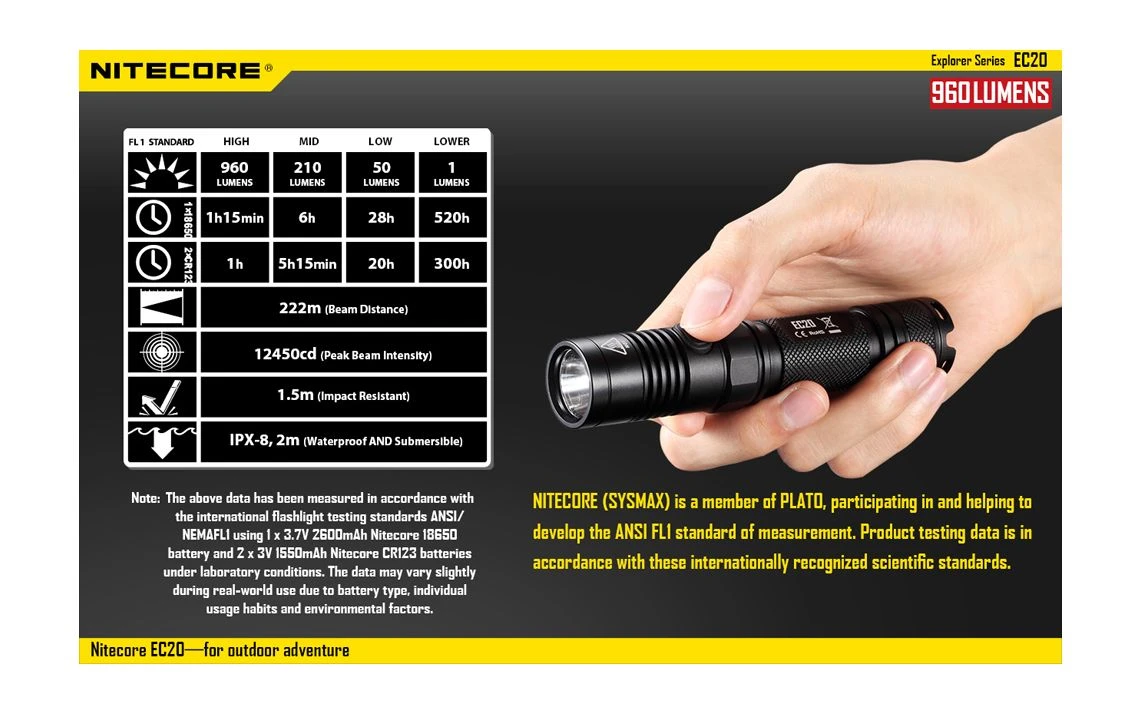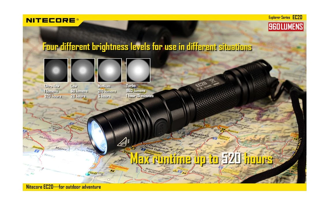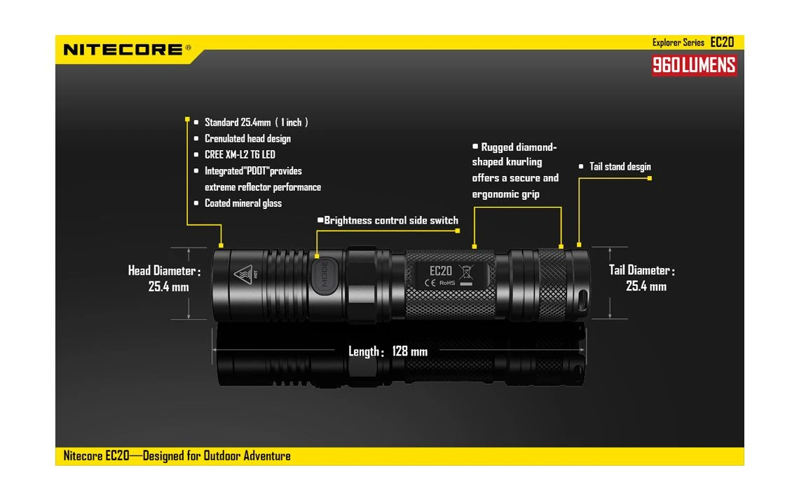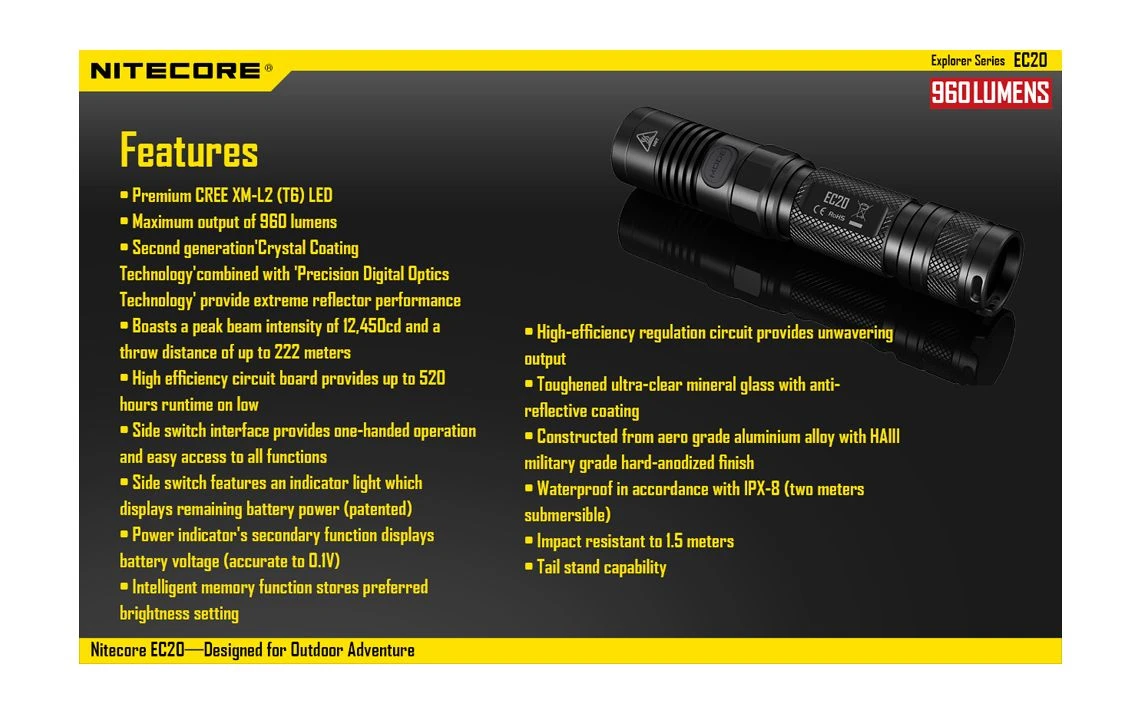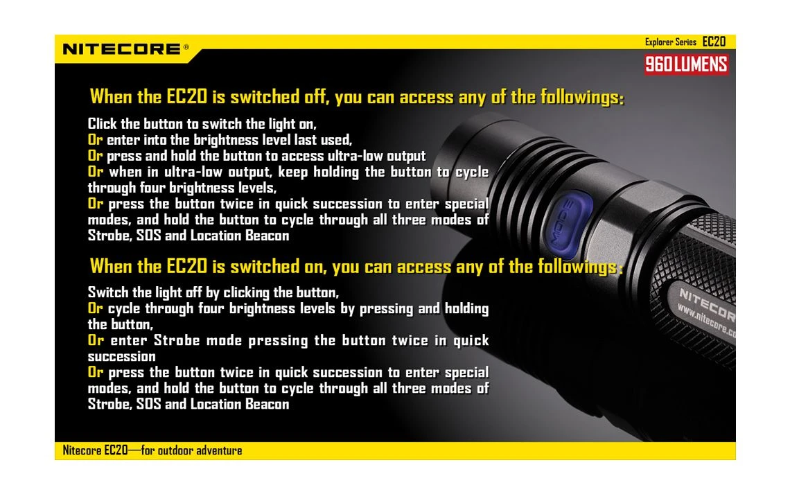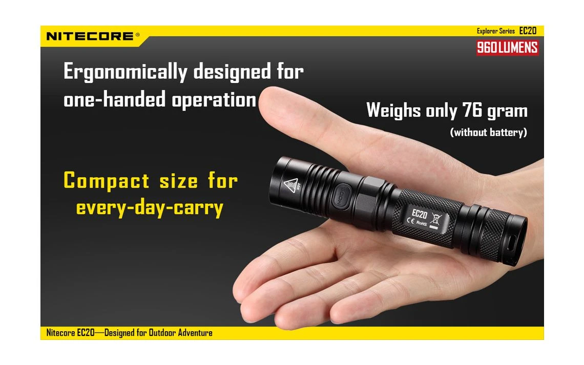 76g, 960 Lumens: At only 128mm long this is one of the smallest torches to drive a CREE XM-L2 LED at full power output up to 960 lumens. The backlit side switch provides easy access to all functions and also indicates remaining battery power. Super compact and full power.