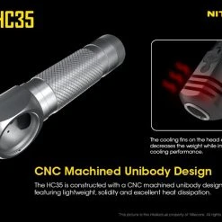 138.5g, 2700 Lumens : The Nitecore HC35 versatile lightweight rechargeable LED headlamp. The HC35 is constructed with a CNC machined unibody design, featuring lightweight, solidity and excellent heat dissipation. Powered by single 21700 and has a maximum output of 2700 lumens with 134 metres of throw. Quick detachable bracket, magnetic tail design, power indicator, 180-degree adjustable output and breathable headband etc are some of the cool features of HC35. Powerful USB-C rechargeable LED searchlight!