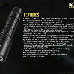 - Runs On: 1 x 21700 or 1 x 18650 (Recommended – Nitecore NL2150HP 5000mAh 15A Rechargeable 21700 Li-ion Battery Included)