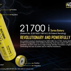 - Nitecore 21700 Li-ion battery included (NL2150HPi 5,000mAh).