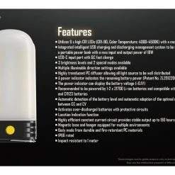 - Utilizes 9 x high CRI LEDs (CRI≥90, Color Temperature: 4000-4500K) with a max output of 280 lumens