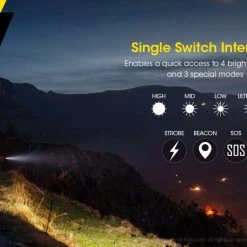 - High: 1200 Lumens – 3 Hours 45 Minutes*