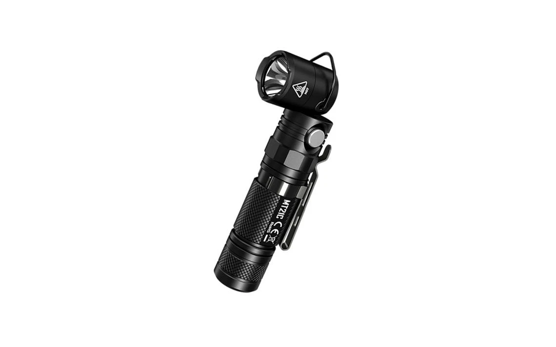 103.5g, 1000 lumen: The Nitecore MT21C is compact multi-functional torch uses an innovative 90 degree tiltable head, equipped with a powerful CREE XP-L HD V6 LED capable of 1000 lumens and 201 yards of throw. Powered by one 18650 or two CR123A batteries, the MT21C has a max runtime of up to 700 hours. 90 Degree adjustable torch