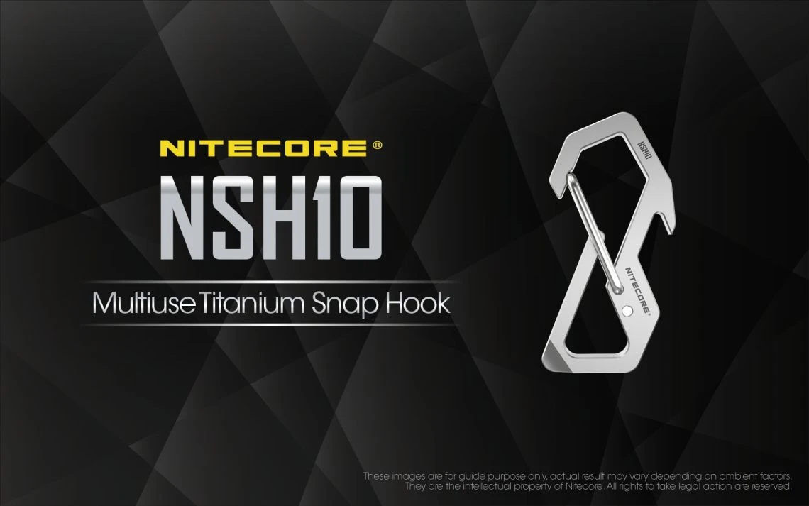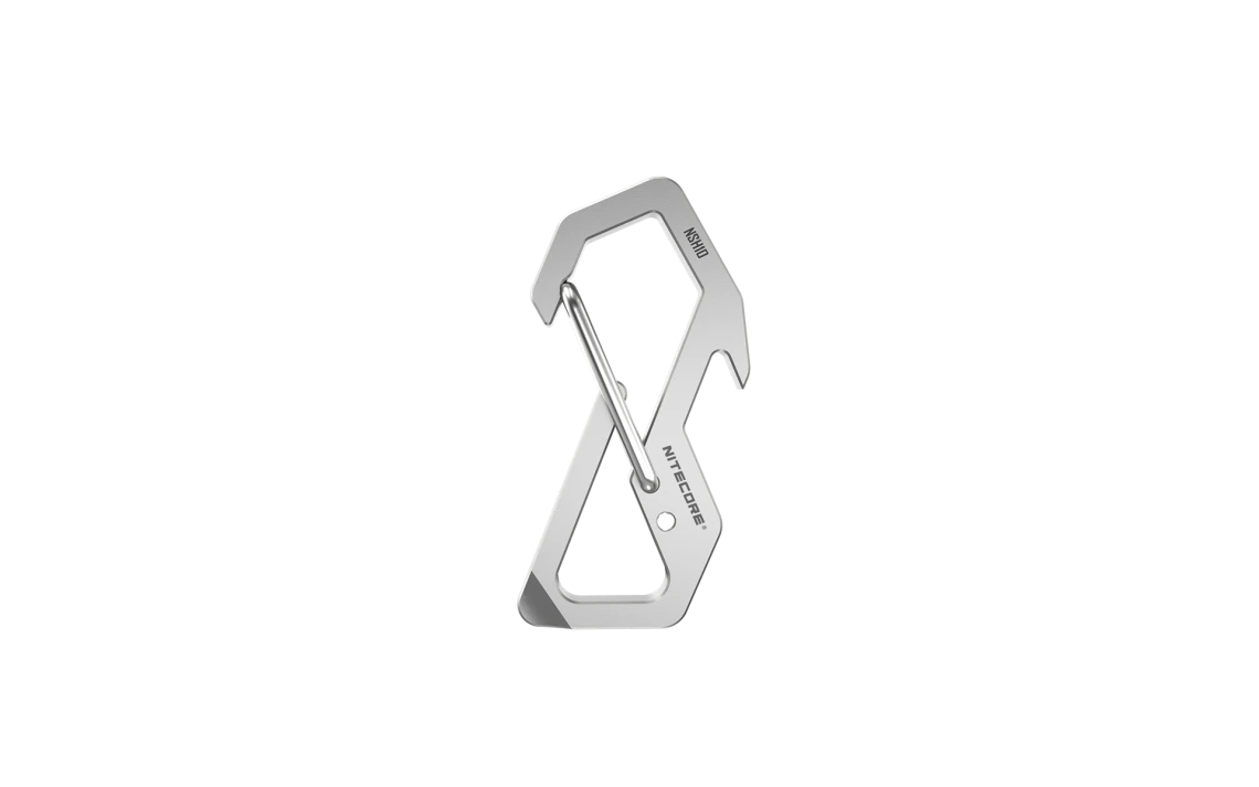 The Nitecore NSH10 is a multiuse titanium snap hook that is reliable with a strong ability to hold and secure everyday items. It has an elastic spring gate which allows for easy and quick attachment. This hook has multiple uses including: key chain, bottle opener, hanging hook and a flat-head screwdriver.