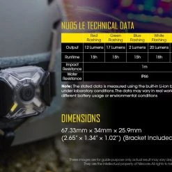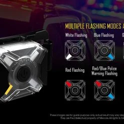 22g, 20 Lumens: The Nitecore NUO5 LE is law enforcement mini signal LED headlamp. The light has 4 high-performance LEDs and has 4 colours output including red/blue police warning flashing light. It has a built-in Lithium-Ion battery pack and can be charged via micro USB cable. It can be mounted on an armour, backpack, helmet etc. It is best for running, flashlight enthusiasts, and law enforcement personnel. Mini signal USB rechargeable headlamp!