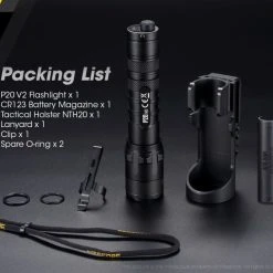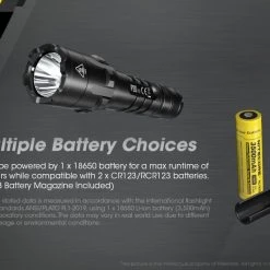 - Runs On: 1 × 18650, 2 × CR123, 2 x RCR123 (Battery and Charger Not Included)