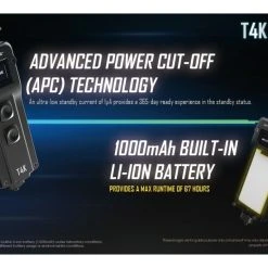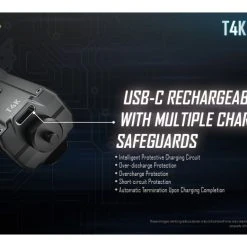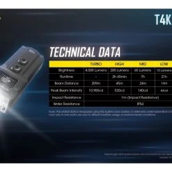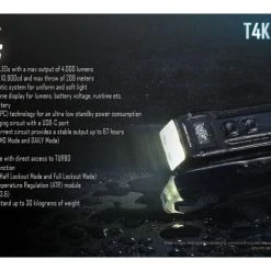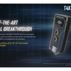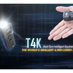 77g, 4,000 Lumens: The Nitecore T4K is the world’s smallest 4,000 lumen light. The T4K utilises 4 x CREE XP-L2 V6 LEDs and a total reflective optic lens system for uniform and soft light. It produces a max output of 4,000 lumens for a short time on turbo and has a max throw of 209 metres. The T4K has a multifunctional OLED real-time display for lumens, battery voltage, runtime and more. The T4K offers 5 brightness levels and can be used in demo mode for EDC and short time illumination or daily mode for outdoor and long-time illumination. The T4K runs off a built-in 1,000mAh Li-ion battery and is USB-C rechargeable for fast charging. The E4K features a versatile deep carry pocket clip and also features a keychain for attaching to other gear. Super high output from a small light.