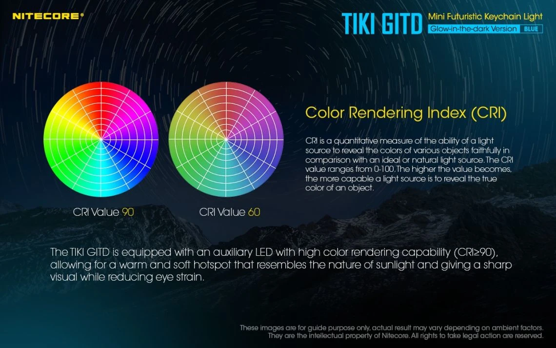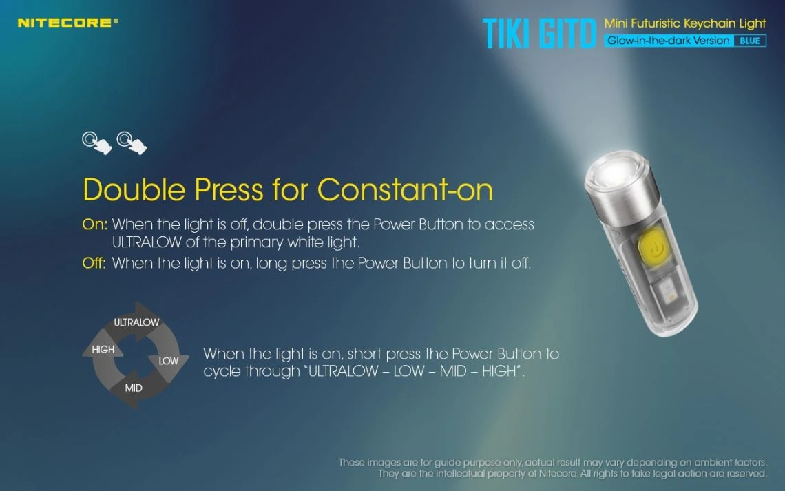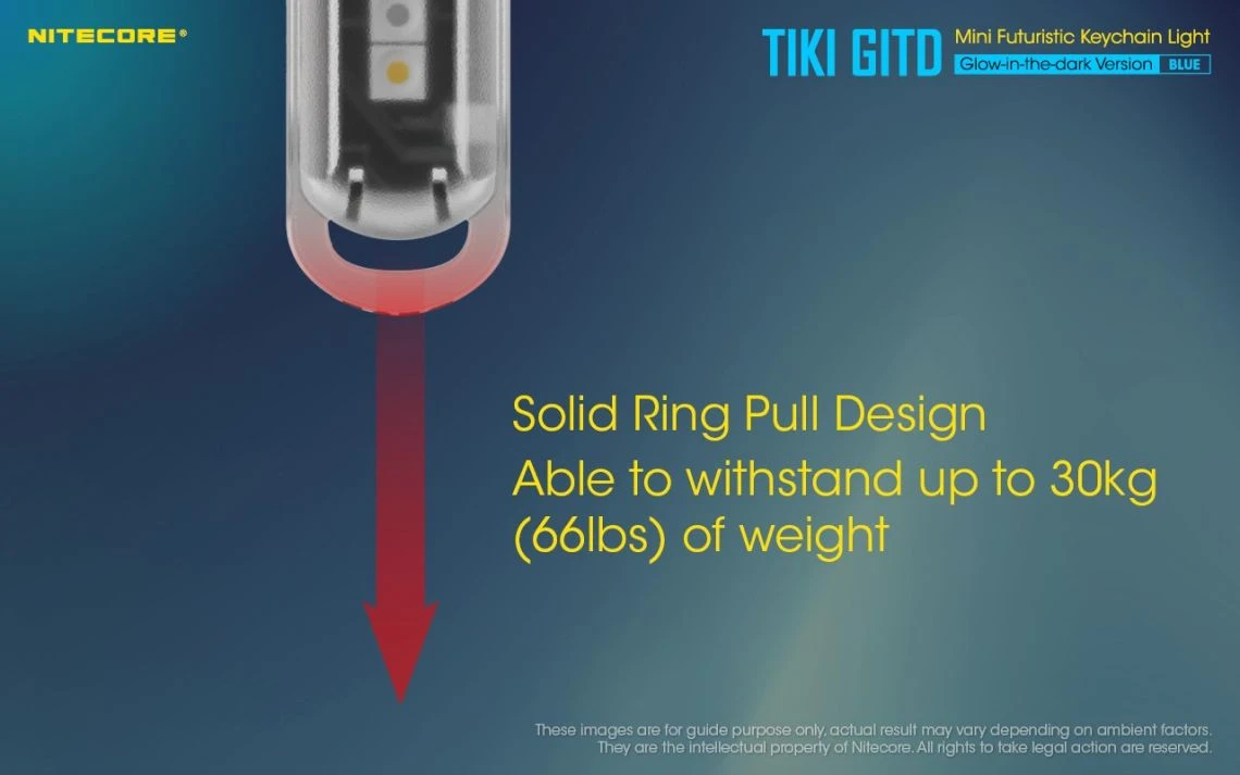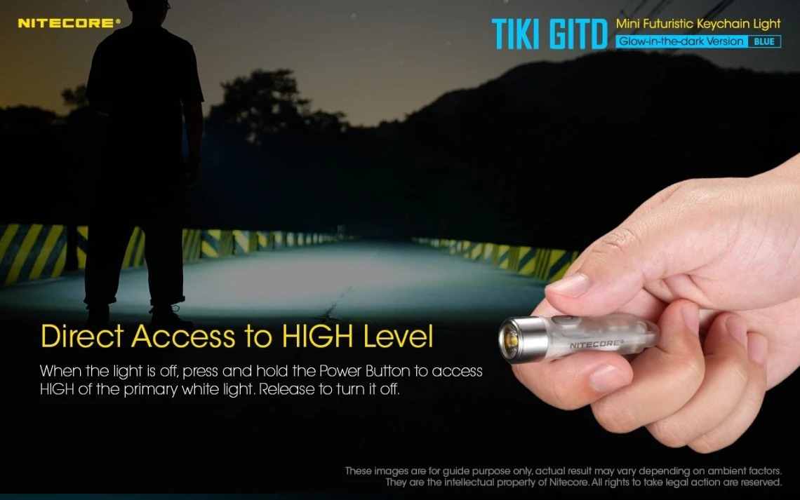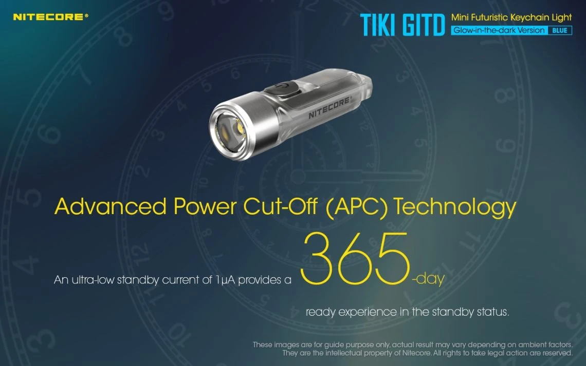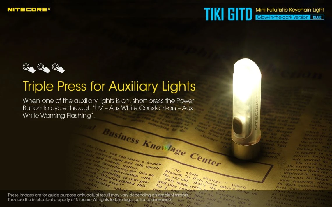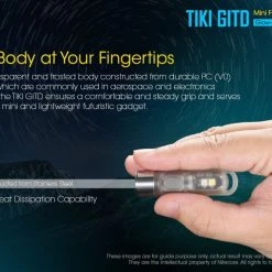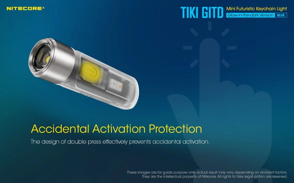 12g, 300 Lumens: The Nitecore TIKI GITD is a mini keychain light that emits a blue glow in the dark. The TIKI GITD will glow in the dark after being charged by its UV light for one second or the sunlight. This super compact light weighs only 12g but can produce up to 300 lumens of output. The TIKI GITD features 3 light sources (White light, UV light and high CRI white light) and can be easily controlled using the one button interface. The light has a built-in 130mAh Li-ion battery and is rechargeable via a Micro-USB cable.