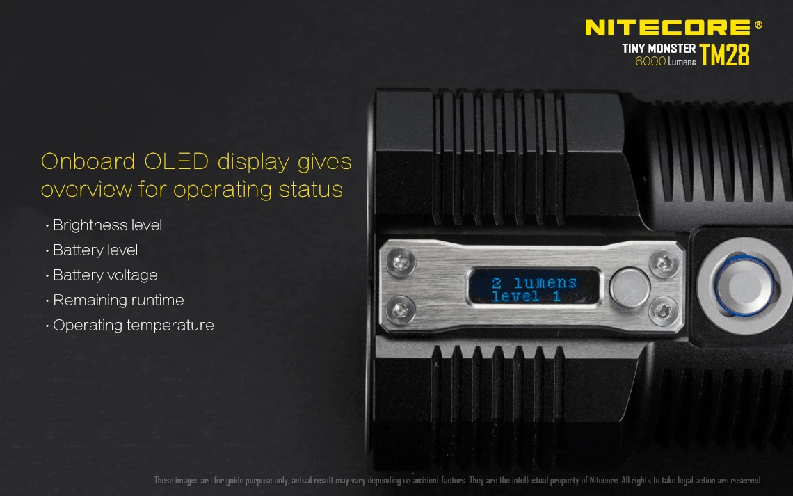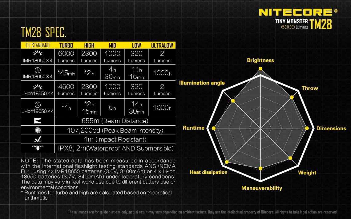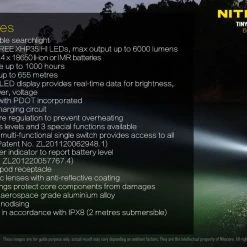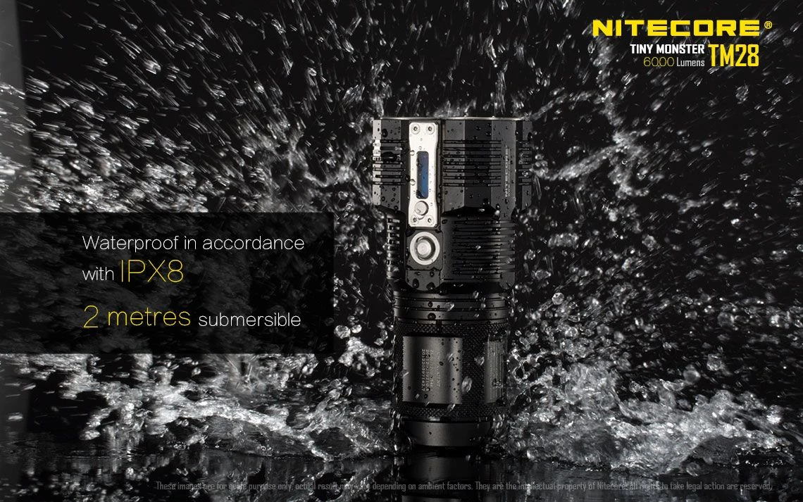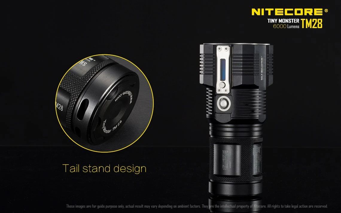 414g, 6000 lumens, 107,200cd: With an unbelievable 6000 lumens paired with 107,200cd produced by 4x XHP35 HI, the Nitecore TM28 is perfect for Search-And-Rescue(SAR) situations. Along with this impressive illumination capability, the TM28 also possesses a staggering 1000 hours of runtime with 4 18650s. Impressive 655 metre throw!