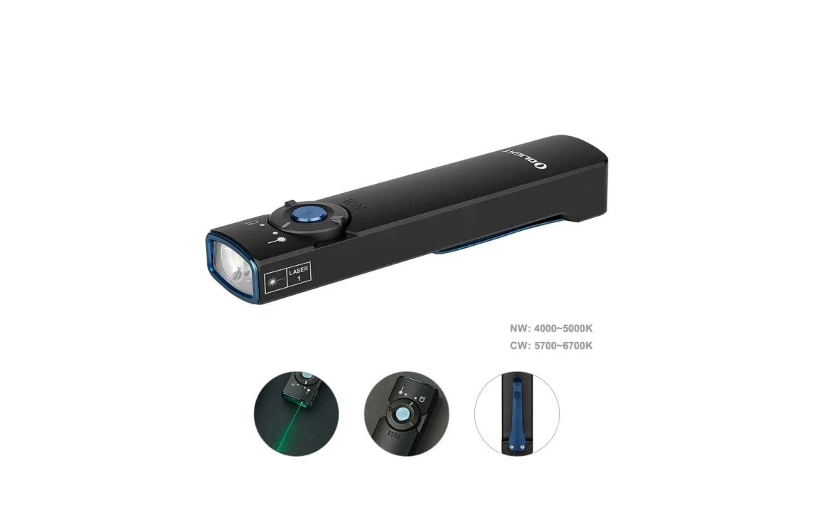 - Olight’s First Dual Light Source Flashlight: Easily switch between the white light and the green laser with the flip of a switch. It can meet the different needs of your daily life.