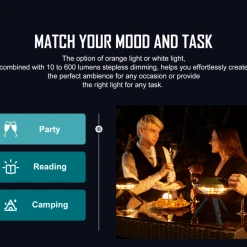 - Dual Light Sources:Both an orange light (6 Filament LEDs) and a white light (LED Strip), fully adaptable to your needs.