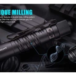 - Double helix body knurling provides a unique aesthetic and excellent grip.