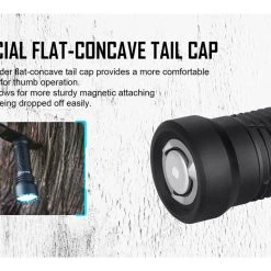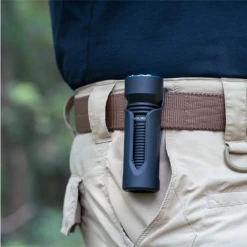 - The rear follows Olight’s two-in-one tail cap design whose functions include magnetic charging and thumb operation.