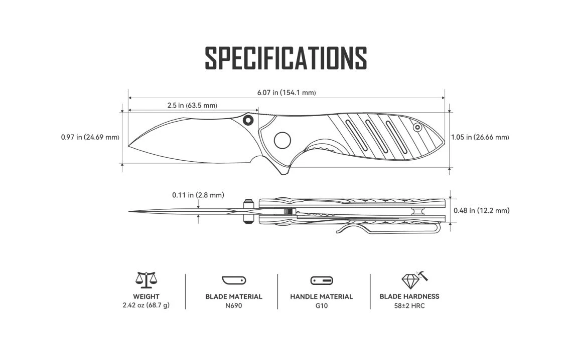 - Material: Handle – G10 / Blade – N690 stainless steel