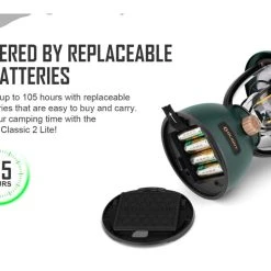 - Powered by 4 standard AA batteries, it runs up to 105 hours. In addition, the stable base, wrapped stainless steel handle and the hang ring enable flexible placement options while in use. Elegant and practical, the retro style Olantern Classic 2 Lite is a great addition to your campsite, backyard, or emergency situations.