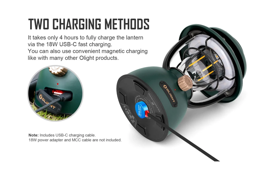 - Charge type: USB-C or Olight MCC charging cable
