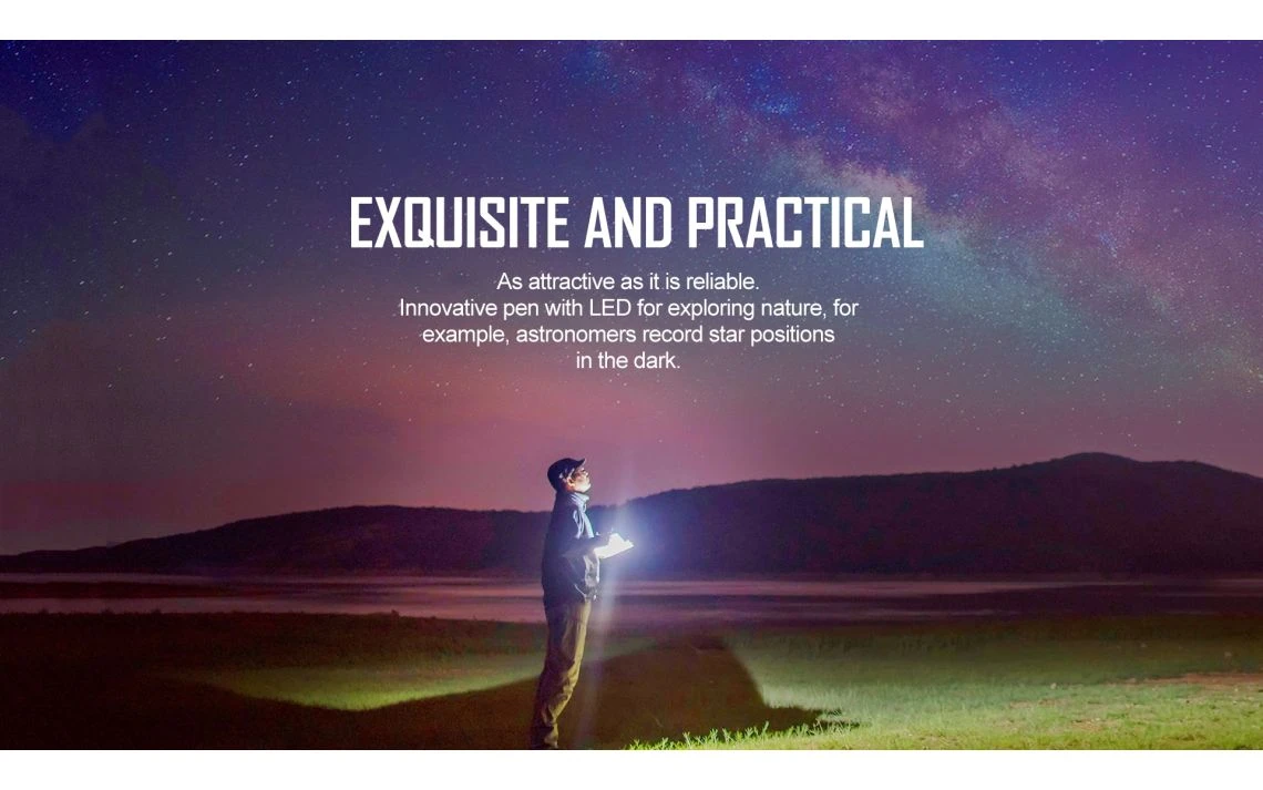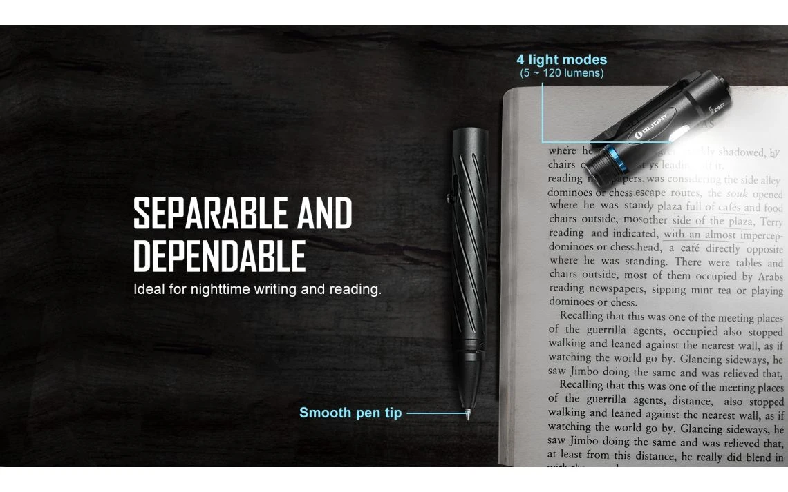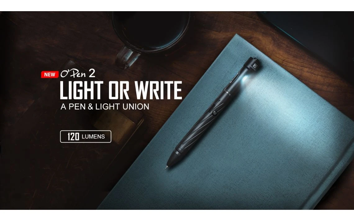 38g, 120 Lumens: The OPEN 2 is OLIGHT’s first EDC pen with illumination function. It can be either integrated or divided into two functionally independent parts: a pen and a flashlight. The pen tip is very smooth for writing and the ink is legible. The OPEN 2 features a L-type bolt action design for the ink and the LED light is on the upper part of OPEN 2. Single-click the switch at the top to activate the light and it can deliver 4 levels of brightness from 5 lumens to 120 lumens. Built-in rechargeable lithium-polymer battery, popular USB-C charging and humanized charging indicator ensure a worry-free charging. The OPEN 2 is durable and lightweight (only 38g) for everyday carry on duty, patrol, or out and about. Keep OPEN 2 with you to lighten up your instant inspiration. 4 levels of brightness.