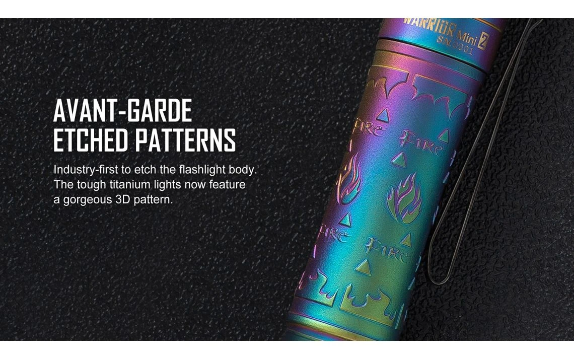 122g, 1,750 Lumens: The Warrior Mini 2 is a dual-switch tactical EDC light and an upgraded version of the previous Warrior Mini. This powerful pocket torch is now available in the stunning Limited Edition Titanium Elements range. The Warrior Mini 2 is now 17% brighter, can throw 16% further and has improved features like the proximity sensor. Despite it’s compact size, the Warrior Mini 2 is powerful with a max output of 1,750 lumens and a 220m beam distance. The Warrior Mini 2 comes with a two-way pocket clip, detachable lanyard clip and carabiner-style ring for a variety of carrying options. This torch runs off a customised 3500mAh 18650 Li-ion battery and is rechargeable via the MCC3 charging cable, ensuring a long runtime. Putting together the best technologies available, the Warrior Mini 2 serves as a superior EDC light, camping and hiking torch, powerful light on duty and a handy tool for self-defence. Limited edition – Only 4,000 worldwide. Only available while stocks last.