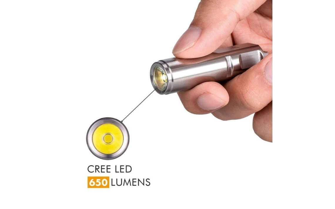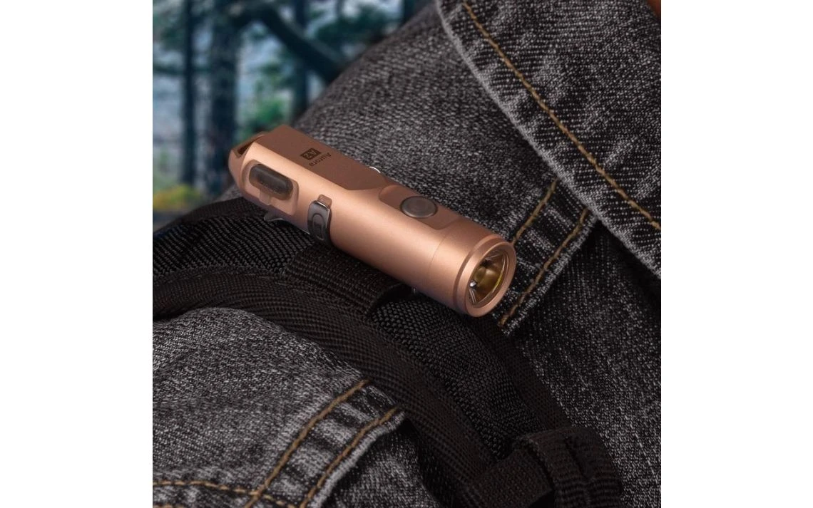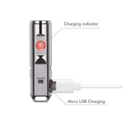 35.7g, 650 Lumens: The RovyVon Aurora A2x is a super compact keychain light with a high output. It is available with either a CREE XP-G3 LED or Nichia 219C LED. The CREE LED is the brightest with a max output of 650 lumens while the Nichia LED is a warm light and renders colours as accurate as possible with a max output of 450 lumens. The A2x runs off a built-in 260mAh lithium polymer battery and is rechargeable with the included Micro USB cable. You have 4 brightness levels to choose from as well as a strobe mode which can all be controlled with the easy to use button. The A2x is also available in 6 different colours with different surface treatments. It comes with a lanyard, pocket clip, and key ring making this a very handy EDC torch. Super compact but high output.