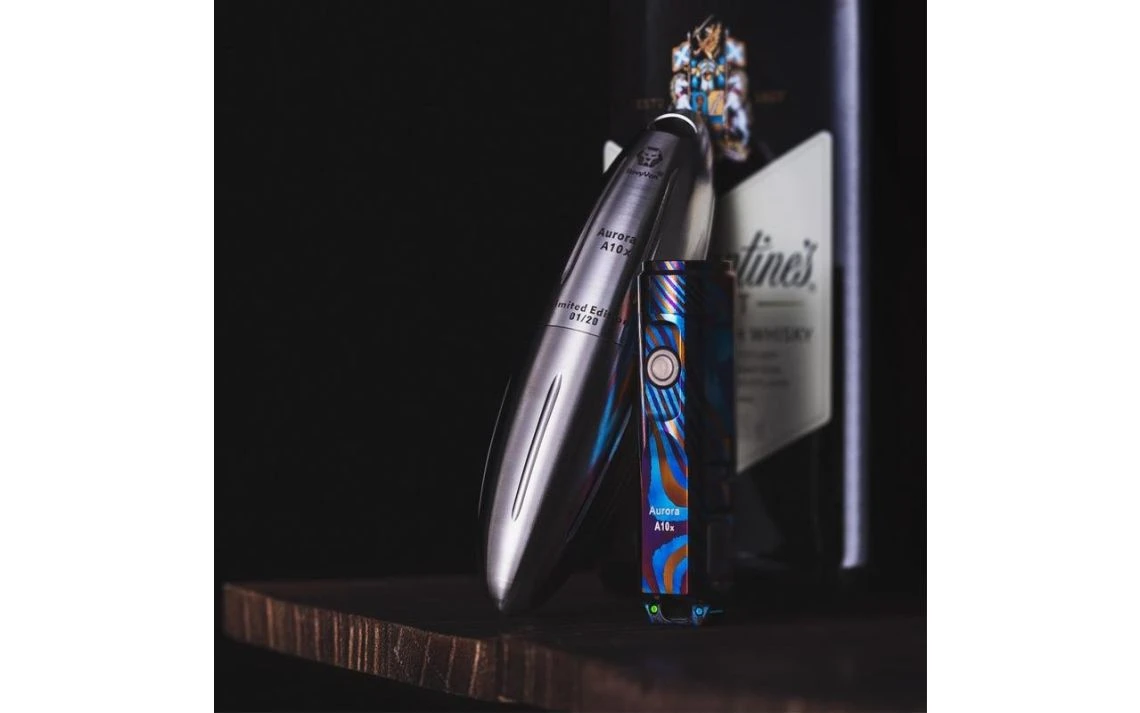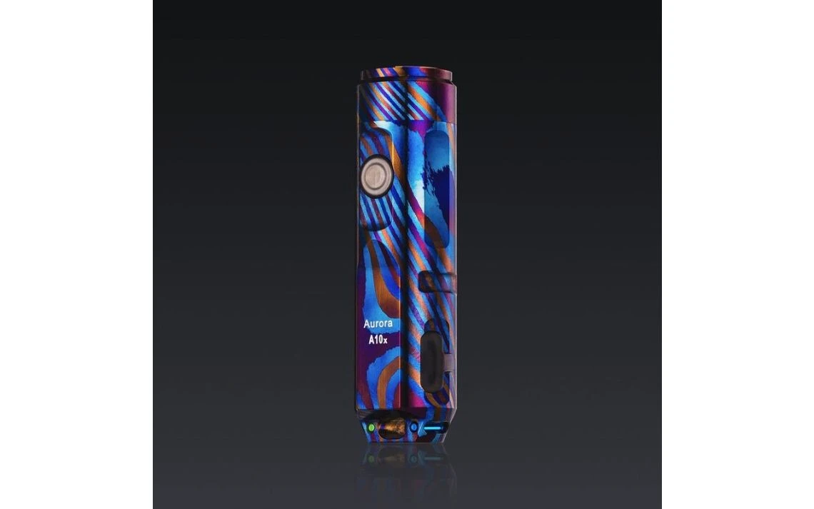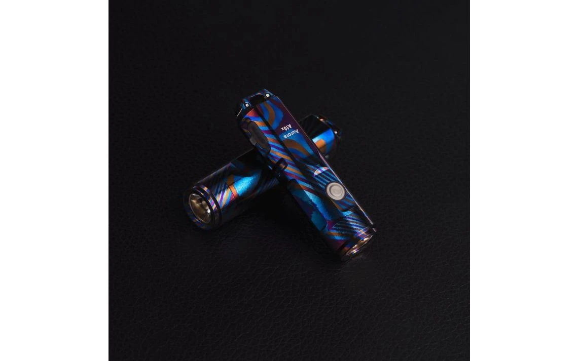 24.7g, 650 Lumens: The RovyVon Auroroa A10x is one of the most unique torches we’ve seen and is extremely limited with only 20 of these initially made. Made of Timascus (Titanium Damascus), this really is a one of a kind EDC torch. The A10x comes in a U7 titanium capsule and ther are numbered out of 20 on the capsule so every unit is unique. The A10x is available with a CREE XP-G3 LED or Nichia 219C high CRI LED. You have 4 brightness levels to choose from ranging from moonlight up to 650 lumens for CREE or 450 lumens for the Nichia LED. This torch runs off a 260mAh lithium polymer replaceable battery and is rechargeable with the included micro USB cable. The A10x comes with two tritium vials installed along with a range of extra parts and a storage case to hold everything. Extremely limited – only 20 made worldwide.