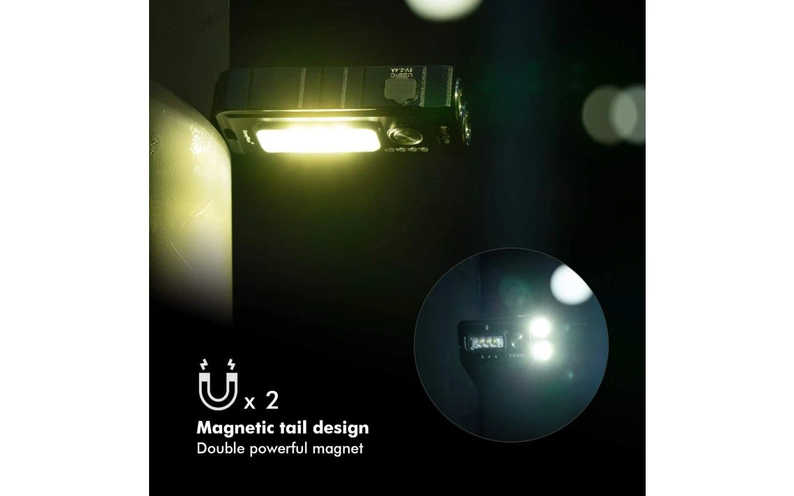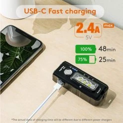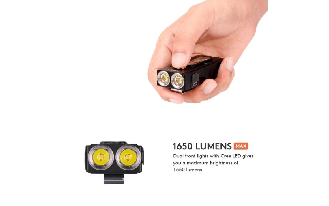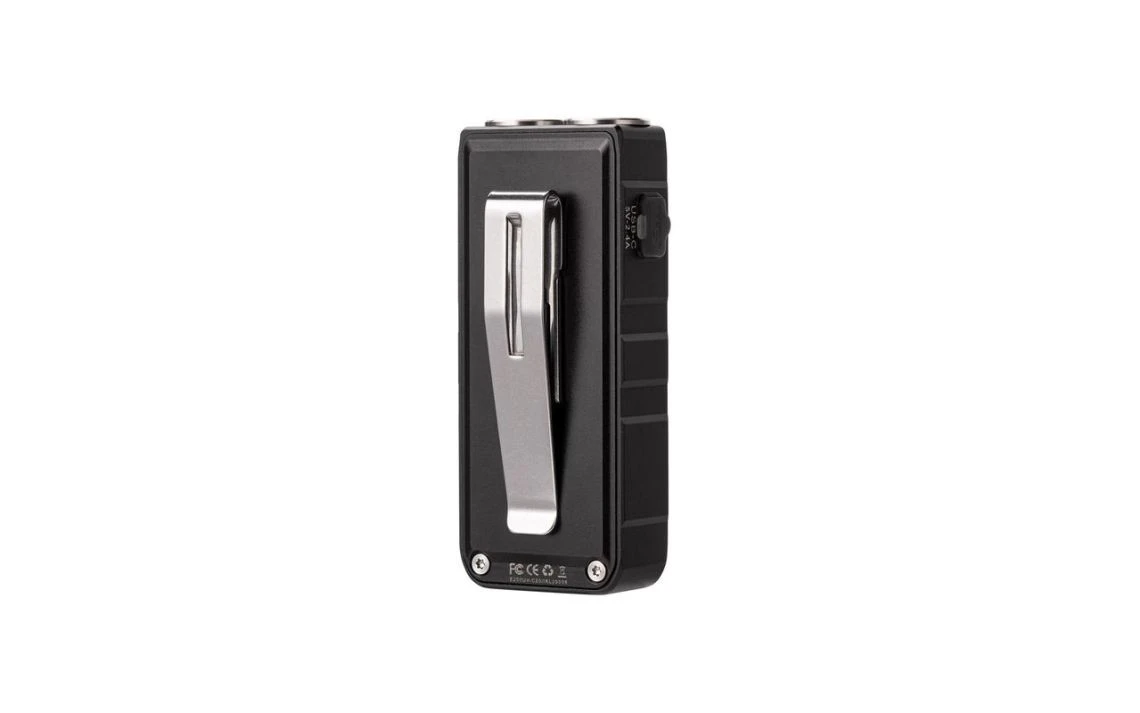 82g, 1650 Lumens: The RovyVon Angel Eyes E200s is a compact multifunctional torch for everyday carry. It features two CREE XP-G3 LEDs (6500k) at the front which produce a max output of 1650 lumens. The E200s also features three CREE XP-G3 LEDs on the side which have a max output of 1000 lumens. The front LEDs are best for longer distance and a more focused beam, while the side LEDs are ideal for close up tasks. The E200s runs off a built-in 1400mAh Li-ion battery and is directly rechargeable with the included USB-C cable and charges in only 48 minutes. The E200s features two metal e-switches for easy operation as well as a battery level indicator. The E200s also features a pocket clip for mounting on your hat or gear and a built-in tripod port allows you to mount it onto a tripod for photography and other purposes. Features both front and side LEDs.