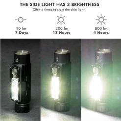 - High: 800 Lumens – 4 Hours