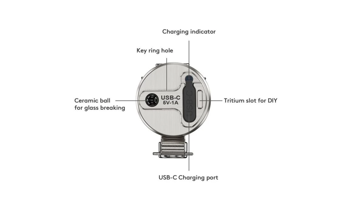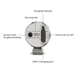 - Ceramic glass breaker integrated on the tail cap