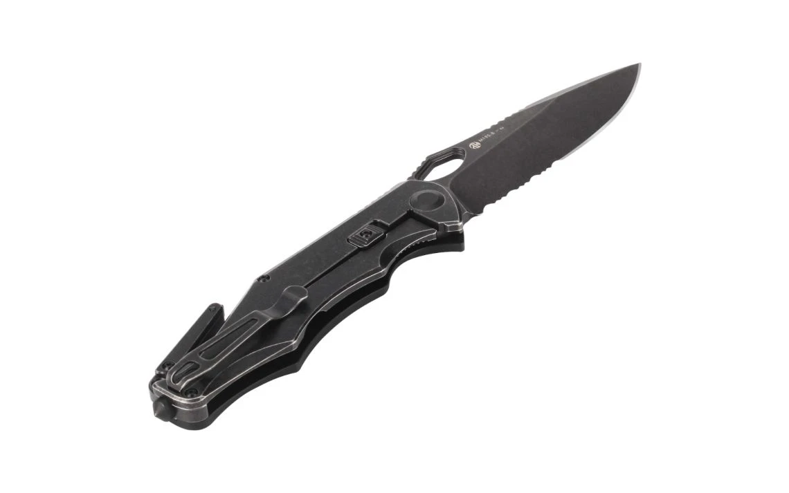 Featuring with D2 steel blade, handle made of ergonomically shaped and textured G10 and steel, glass breaker, safety cutter and double locking system, M195 is well outfitted and versatile in tactical use, and also has perfect performance in outdoor and rescue purposes. The blade is forged of a premium D2 steel and finished with stonewash coating for high durability and excellent edge retention. To better adapt to different environments and maximize value in use, we’ve added a glass breaker to the tip of the frame and a hook on the back of handle to cut ropes sharply, included a Nylon sheath reflective stripe for convenient carrying and maintenance.