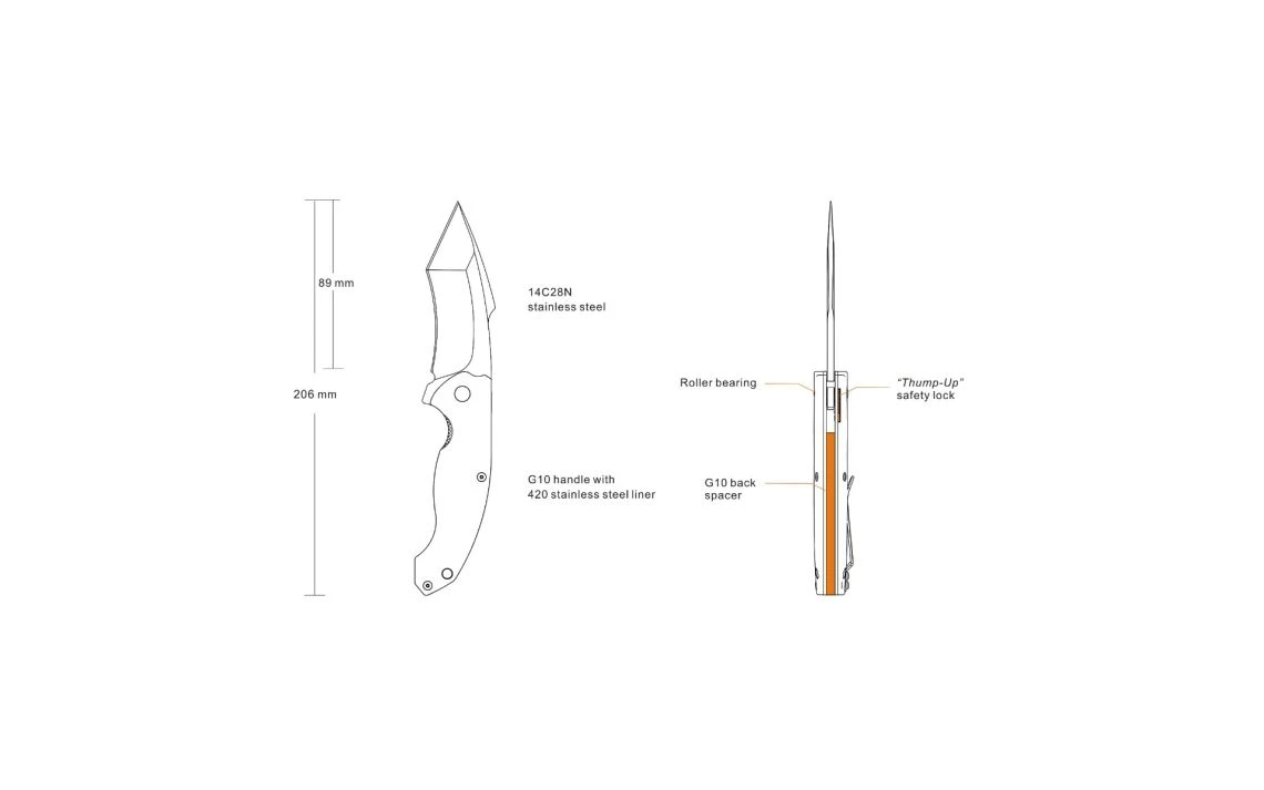 - Blade Material: 14C28N stainless steel (58~60 HRC)