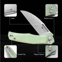 The SENCUT Watauga is a button lock knife with style. With a grippy handle and D2 blade, this is an awesome EDC knife. SENCUT knives are sharp and well-made. If you own one, you know they are some of the best budget friendly knives out there. Something that tops it all off is that they have a deep-carry pocket clip that fits very well in your pocket and is easy to take out with minimal effort. They can be opened with just one hand and can be your new outdoor as well as indoor companion.