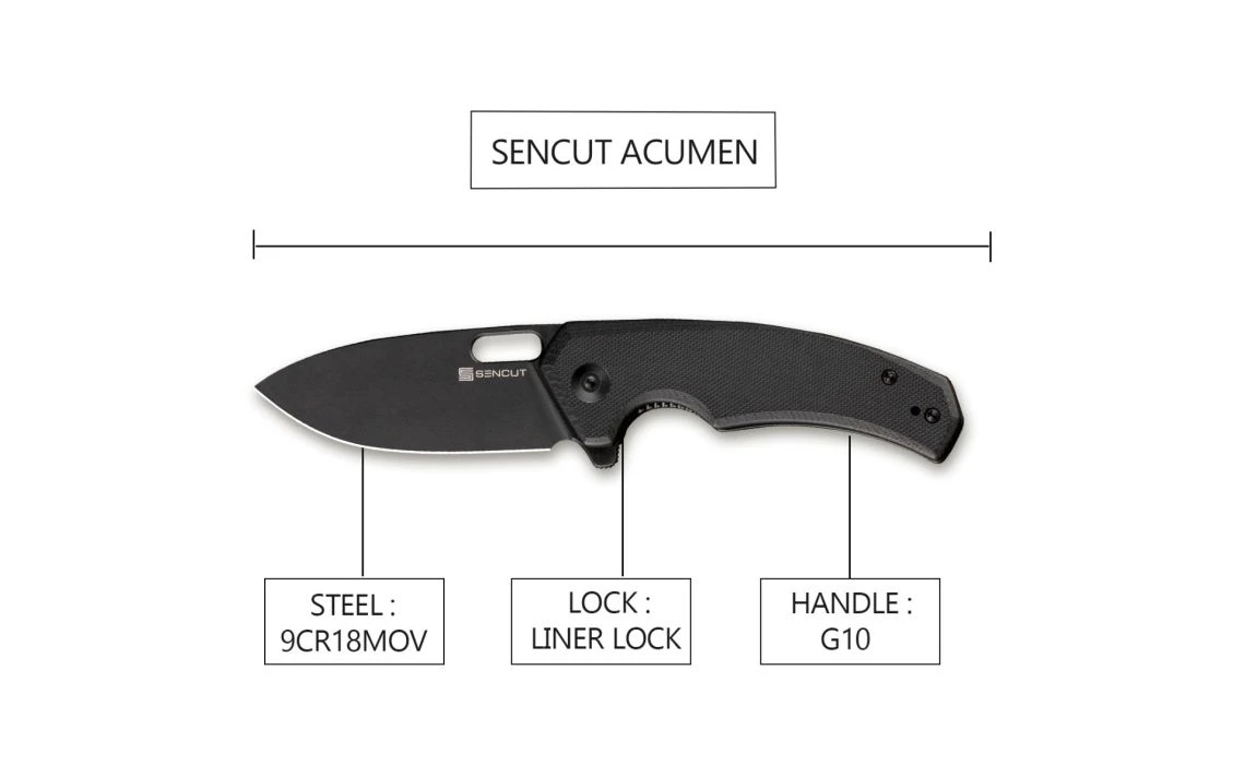 The Acumen by Sencut is a flipper knife sporting a beautifully contoured handle and a wide drop point blade. With to ways of opening it, this knife can be opened one-handed. This is a great Edc Knife that is dressed to impress. The 9Cr18Mov steel blade has great edge retention and corrosion resistance.
