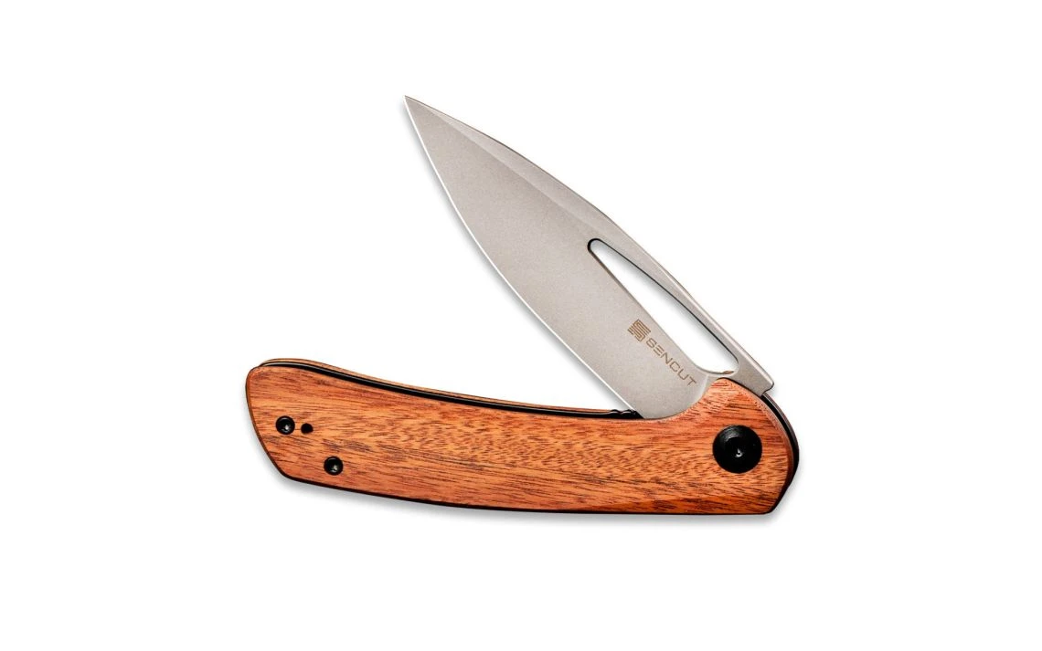 - Beautiful cuibourtia wood handle with steel black accents and liner.