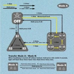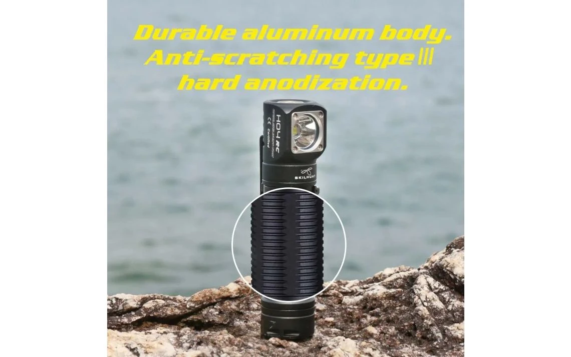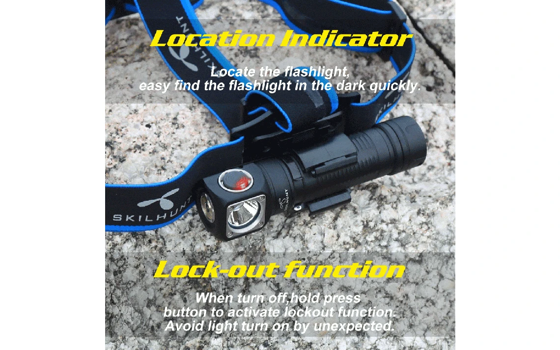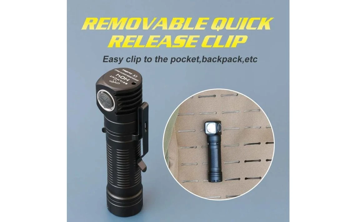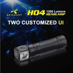 46g, 1,000 Lumens: The Skilhunt H04 is a compact multipurpose headlamp and right angle light. It produces a max output of 1,000 lumens and has a max beam distance of 123m from a CREE XM-L2 LED. The H04 has two user interface modes which allow you to use it normally or customise brightness levels. On each mode you have 4 brightness levels as well as strobe modes. The TIR optics of the H04 produces a uniform flood beam to light up a large area. The H04 runs off a 18650 Li-ion battery (included) or 2 x RC123/CR123A batteries. Other features of this light include the removable pocket clip, battery level indicator, magnetic tail cap, lockout function, memory function and IPX-8 waterproof rating. Two user-interface groups to choose from. Available in cool white, neutral white or high CRI.