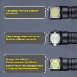 96g, 1,000 Lumens: The Skilhunt H04F is a compact multipurpose headlamp and right angle light. It produces a max output of 1,000 lumens and has a max beam distance of 123m from a CREE XM-L2 LED. The H04F RC has an adjustable lens that can change the beam from focused to flood for meeting different demands. The H04F RC has two user interface modes which allow you to use it normally or customise brightness levels. On each mode you have 4 brightness levels as well as strobe modes. The H04F RC runs off a 18650 Li-ion battery (included) or 2 x RC123/CR123A batteries. Other features of this light include the removable pocket clip, battery level indicator, magnetic tail cap, lockout function, memory function and IPX-8 waterproof rating. Two user-interface groups to choose from.
