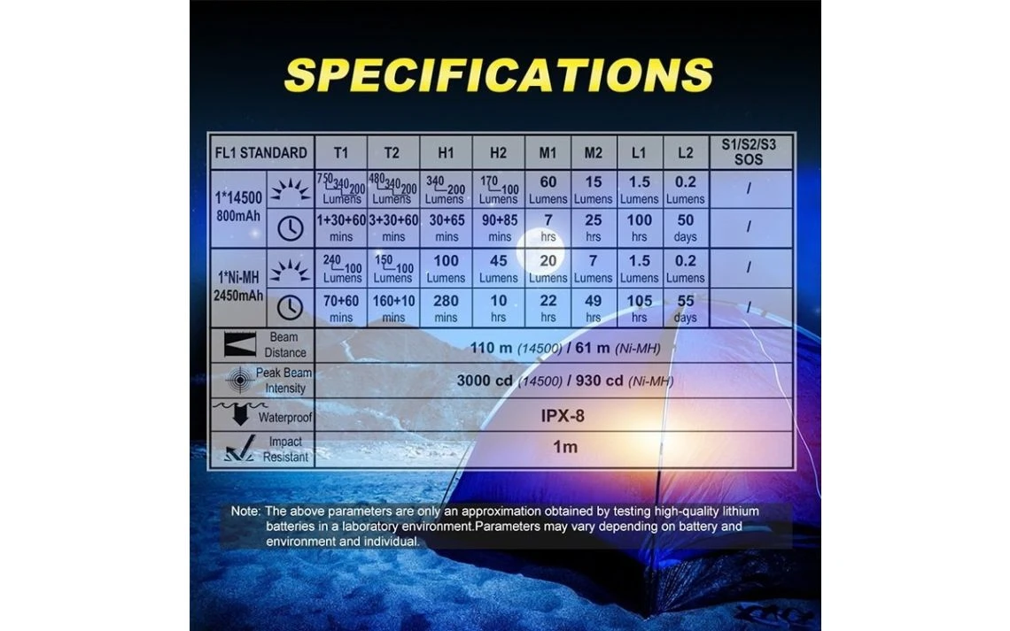 - Runs On: 1 x 1050mAh 14500 Li-ion battery (included) or 1 x AA battery