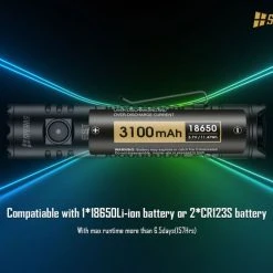 - Power Source: 1 x 18650 battery OR 2 x CR123A battery