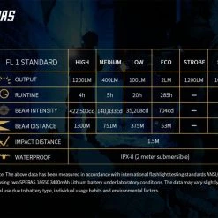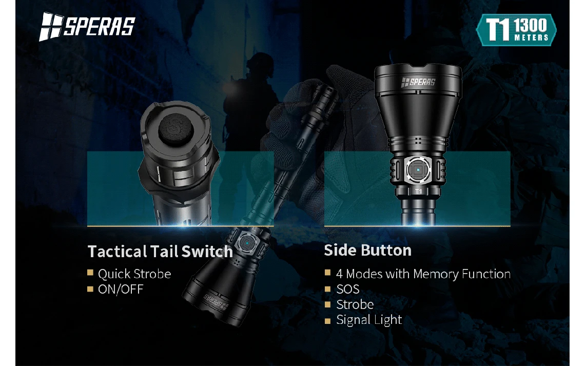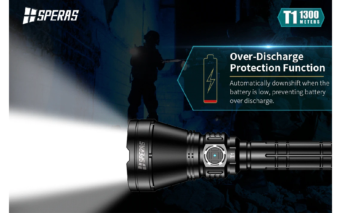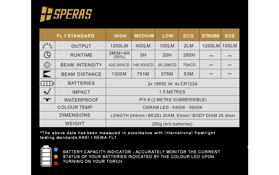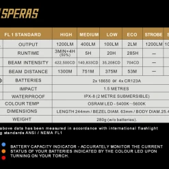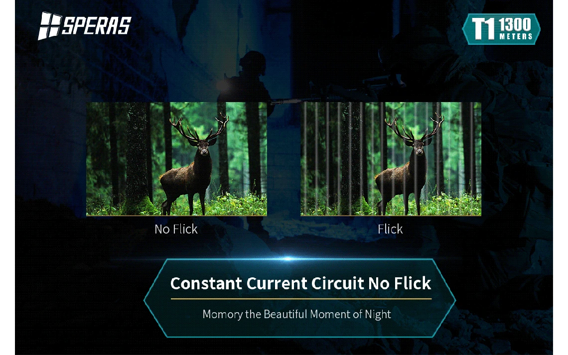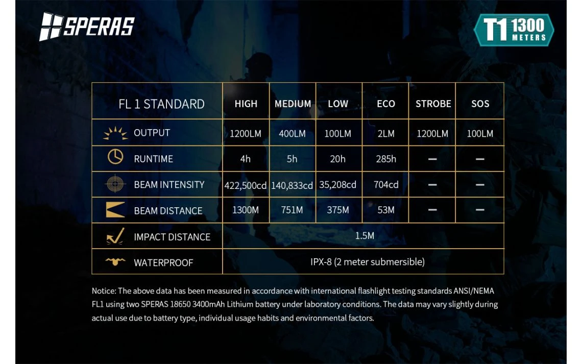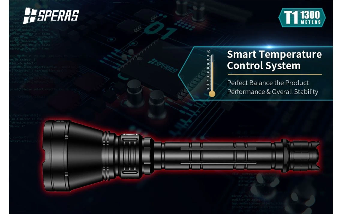 263g, 1200 Lumens, 422,500cd: The SPERAS T1 has a beam distance of 1300m and high output of 1200lm, a customized OSRAM LED, a synchronous step-down circuit with high efficiency up to 92% and special optical system. Complete Hunting kit in a hard case at a super affordable price.