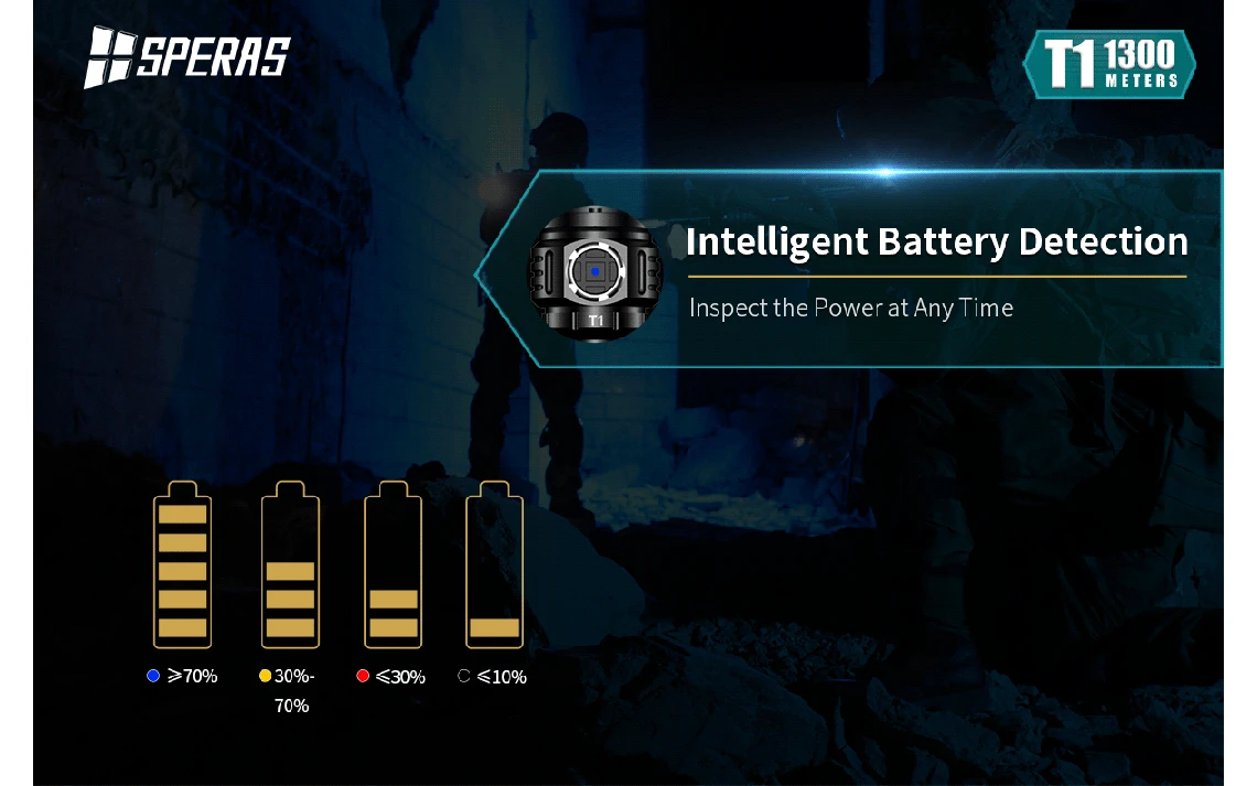 - T1 supports a wide voltage of 16.8V, compatible with 2*18650 Li-battery (included) or 4*CR123A battery.